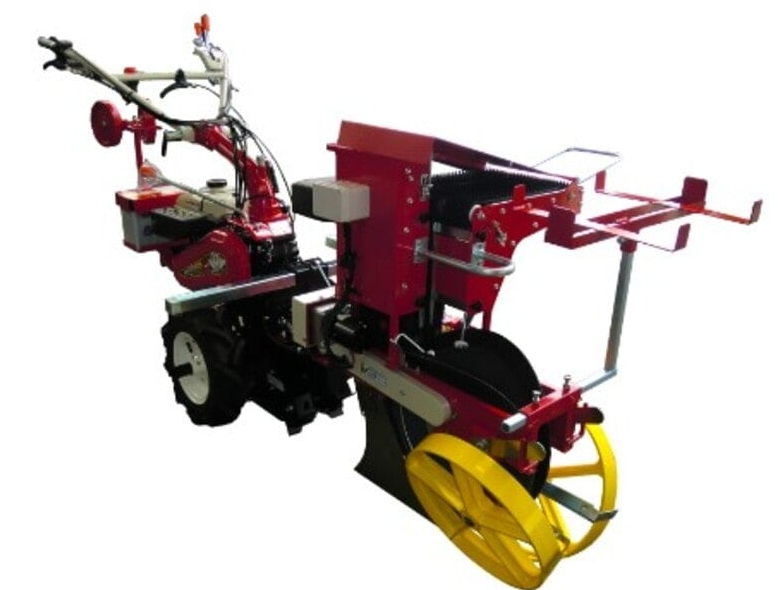 6.3馬力の高出力エンジン搭載。高いけん引力と低速走行時のトルクアップを実現。軽量で、土が付着しにくい樹脂の特性を活かした大きな鎮圧ローラーで苗の定植時にしっかり鎮圧。
