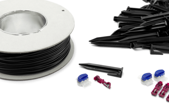 下記の写真は別売りの「設置キットS」で、境界ワイヤー、ペグ、コネクター、カプラーが同梱されています。