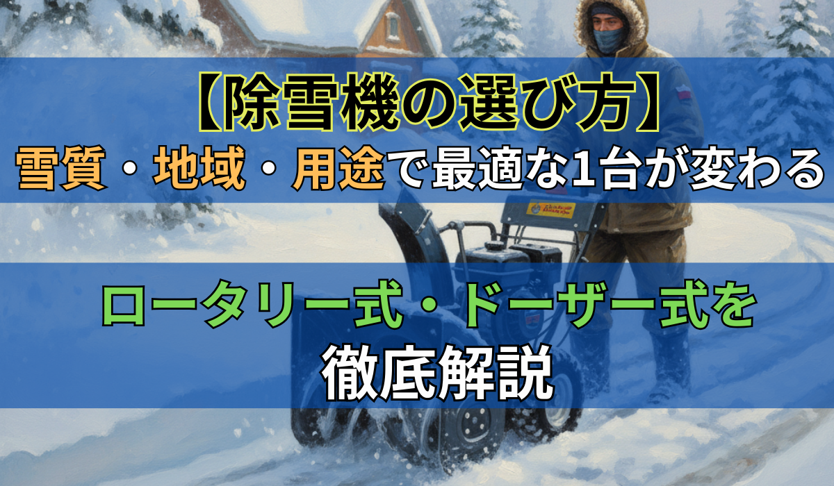 冬が本格化すると、毎日の除雪は生活に直結する重要な作業になります。とはいえ、「どの除雪機が自分の地域・雪質に適しているのか?」は、思っている以上に複雑です。雪の重さ、降雪量、地形、敷地の広さによって必要な性能は大きく変わります。この記事では、除雪機を大きく二つに分ける“ロータリー式(オーガ式)”と“ドーザー式(ブレード式)”の特徴を整理し、地域別のおすすめや選び方、失敗しないためのチェックポイントを詳しく解説します。