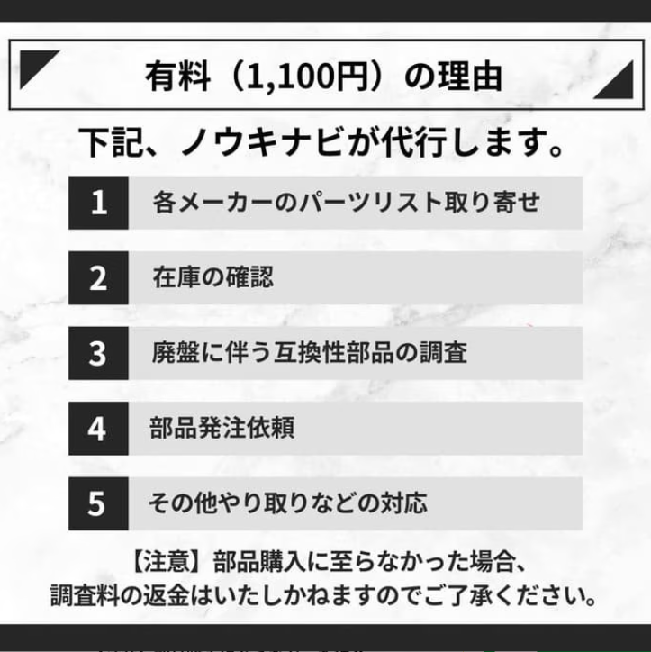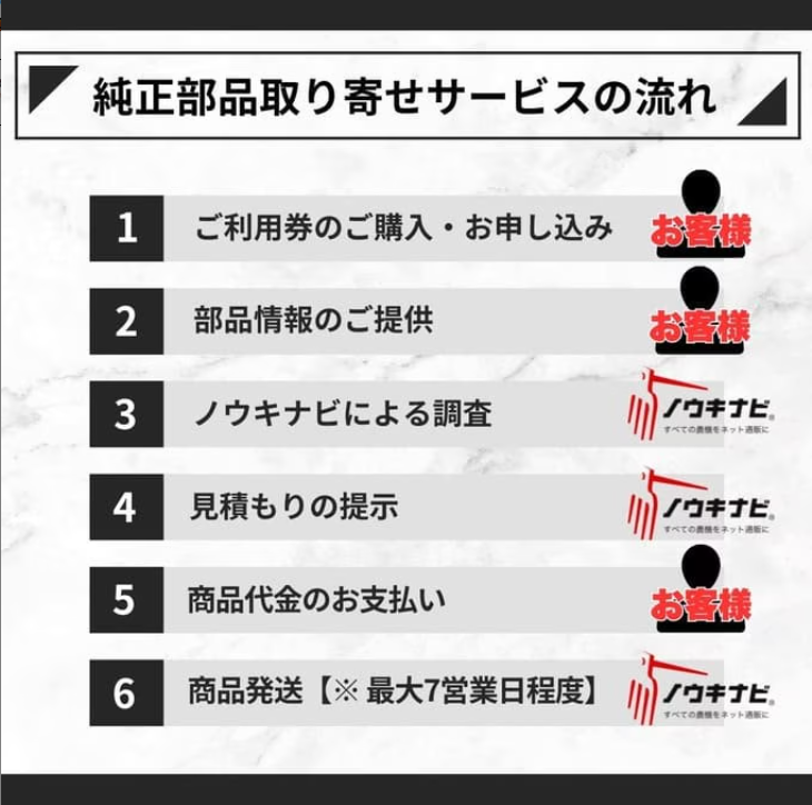 もし点検中に「自分では難しい」と感じたり、交換部品が必要になったりしたときは、無理をせずプロに相談するか、ノウキナビの「純正部品取り寄せサービス」をご活用ください。小さなパッキン一つから、確実にお手元へお届けします。