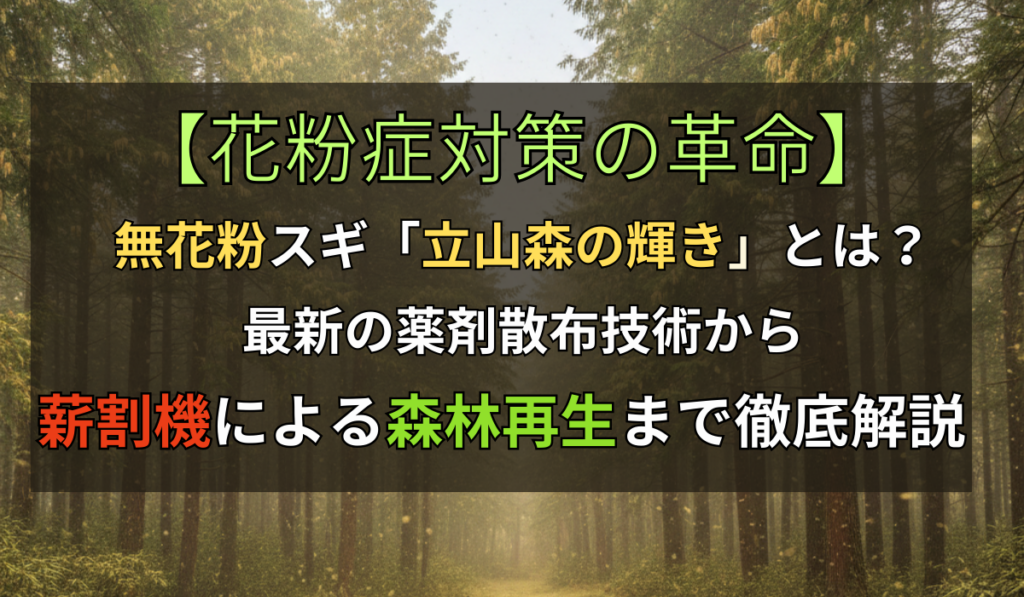 【花粉症対策の革命】無花粉スギ「立山 森の輝き」とは?最新の薬剤散布技術から薪割機による森林再生まで徹底解説
